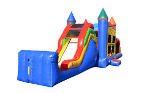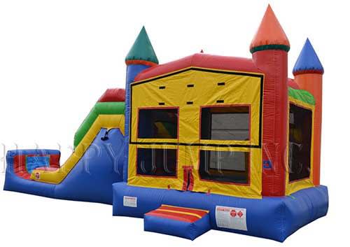 Sometimes, the classics are the best! So many customers love our Castle Combo because of its traditional design that fits all themed events and the fun it has to offer! Inside is a basketball goal, bounce house, and fun slide to the outside!