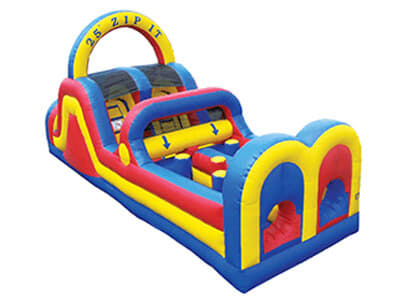 Our 25' Zip It Obstacle Course is perfect for your next event! Whether you are wanting to add a little extra competition or just have fun racing your friends, with two different obstacle tracks everyone is sure to have a blast on this course!