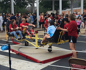 Want to add some excitement to your next? Our Twin Spin activity is the perfect choice! This attraction holds four participants at a time, two on each side, as they work together to push the mechanical bar up and down and gain faster speed.