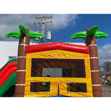 BRAND NEW for 2022... Our Fiesta Double Lane Combo has been the most requested combo unit in past years and now IT'S BACK! This combo features two fun water filled lanes for sliding, a bounce area and tropical look that fits into many party themes such as dinosaurs, fiesta or beach type events!